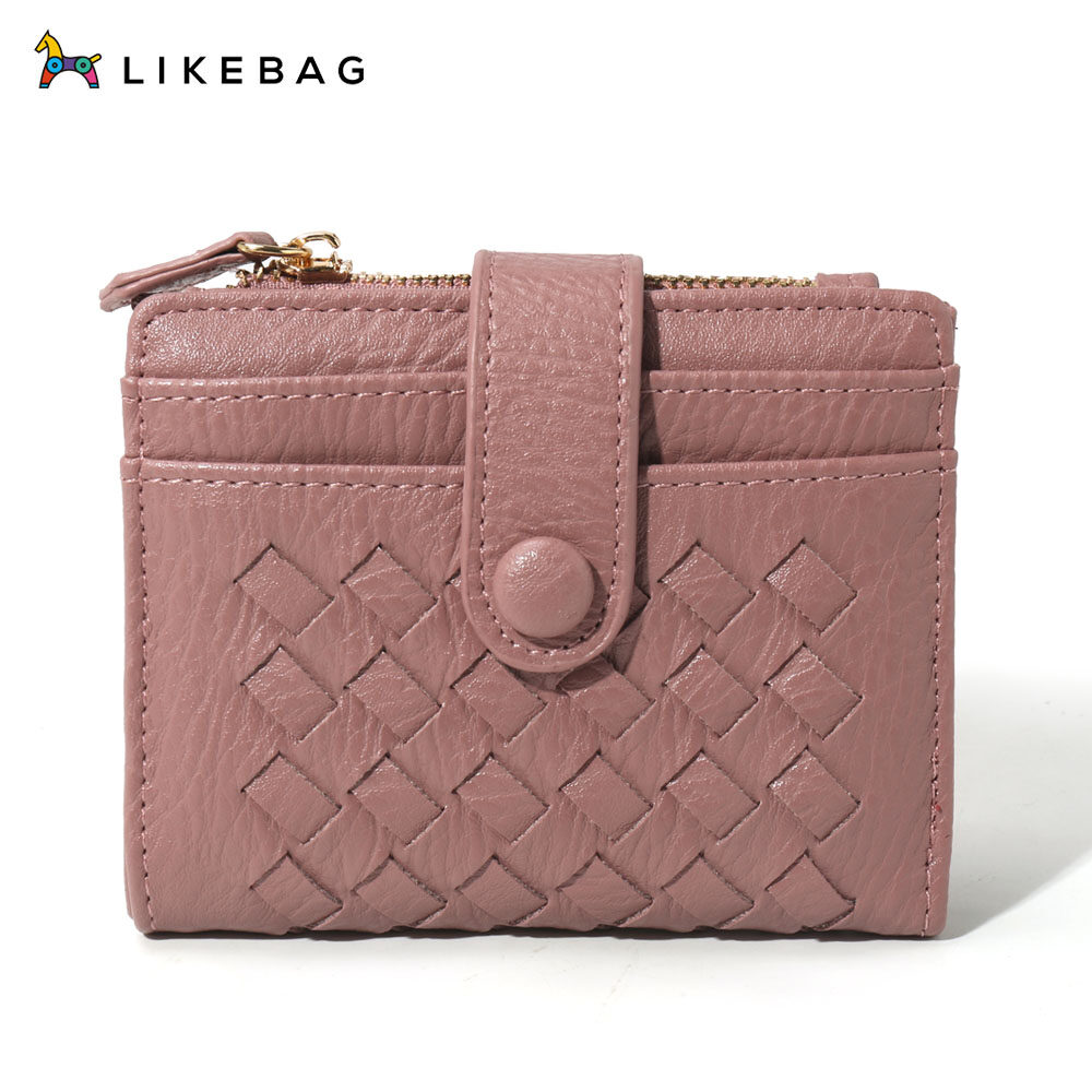 LIKEBAG 2022 Fashion Leather Weave Small Wallet Card Holder