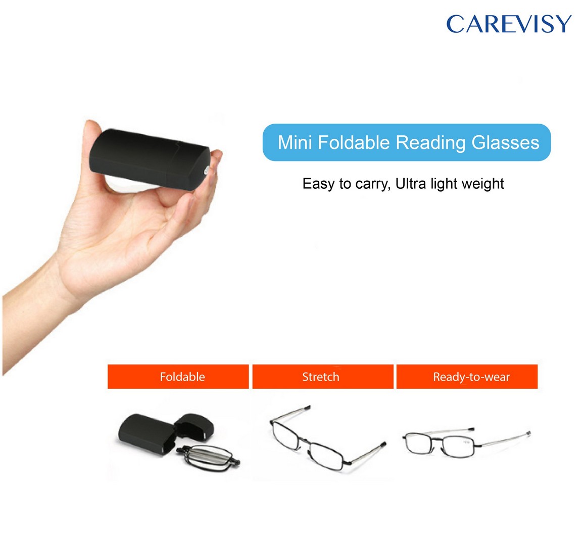 (Gift for parents) CAREVISY Mini Foldable Reading Glasses Presbyopic Presbyopia Glasses Far Sighted Glasses Spectacles for Adults Men Women C6018