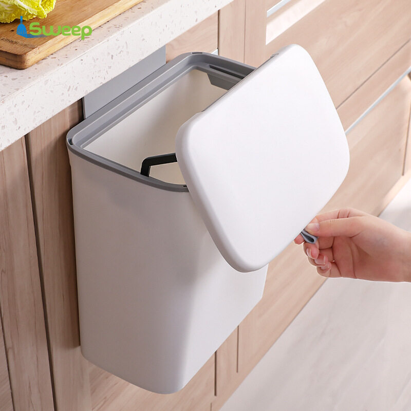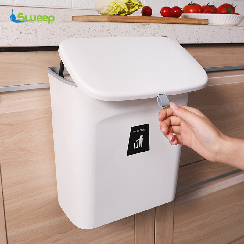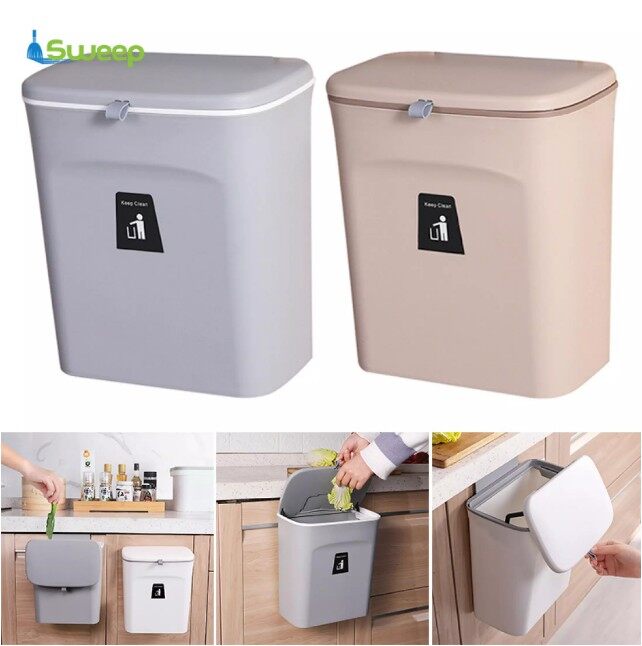 【Ready Stock】Hanging Trash Can for Kitchen Cabinet Door with Lid Wall Mounted Counter Waste Bin Plastic