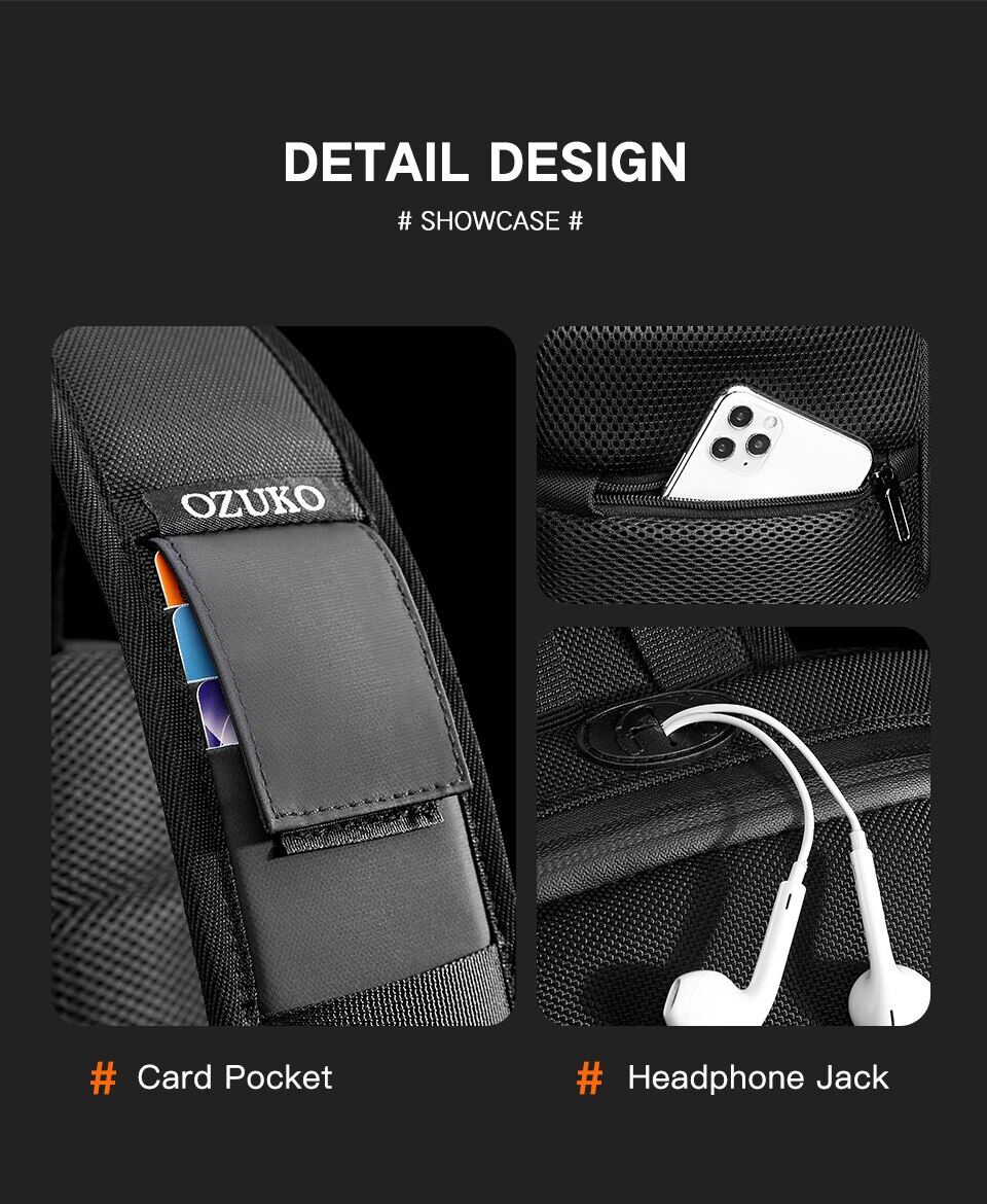 OZUKO New 2021 Multifunction Men Chest Bag Anti-theft Male Travel Sling Bags Waterproof Crossbody Messenger Bag