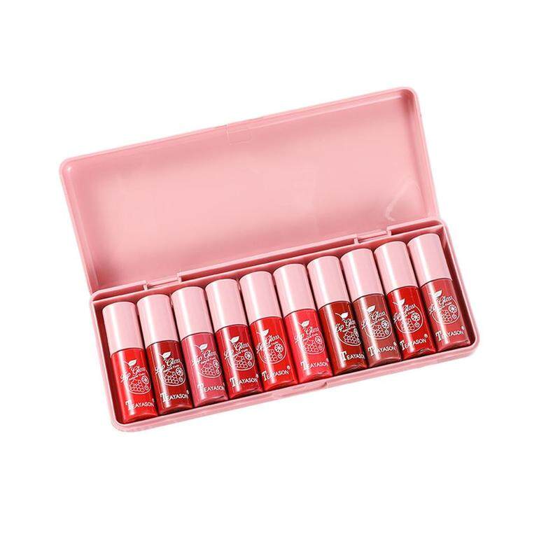 10 Pieces of Pink Pearlescent Set Box Lip Gloss Dye Lip Liquid Lip Glaze Moisturizing Lasting Moisturizing Cute Mirror Lipstick