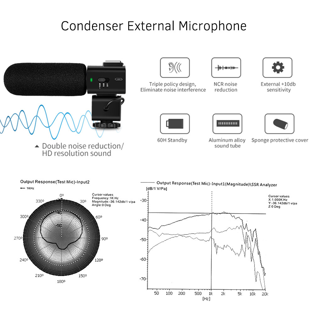 Comes with one 0.39X super wide angle lens and a lens hood to widen the shooting angles, can be used as macro lens after the wide-angle lens being disassembled, with a clip for mounting the lens with smartphones; One external microphone for better radio effect while recording in outdoor activities, conference, etc. and a camera holder for more stable video recording.