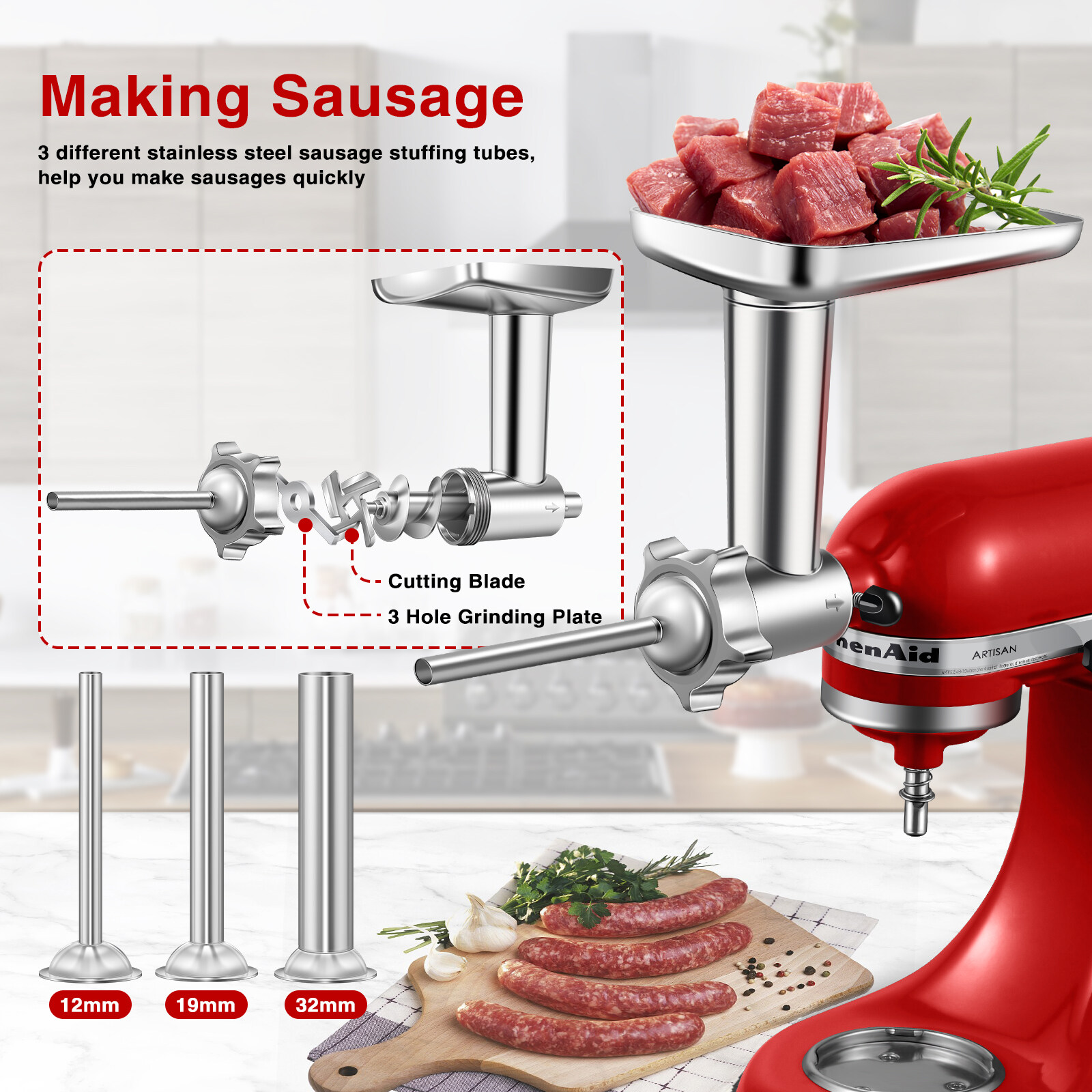 AMZCHEF Food Grinder Attachment Stand Mixer Accessories FGA Slicer and Shredder Meat Stuffer Burger Press For Stand Mixer Artisan Fine Coarse Grinding Plate Grind Meat Sausage Vegetables Cheese For K