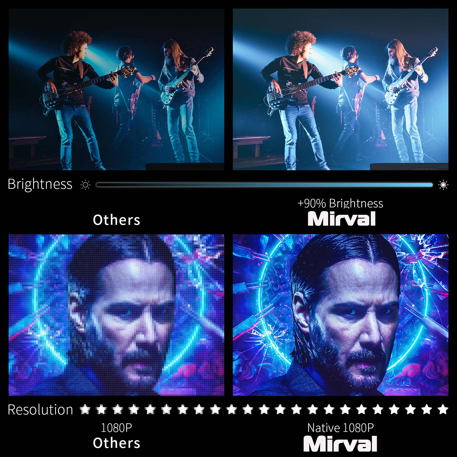 【Native 1080P Android System】Mirval G1 WiFi Mirroring LED 1080P Portable Projector 4K Home Theater 7500 Lumens LCD Video Proyector Classroom Office Projectors