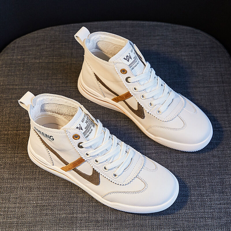 Hong Kong Fashion Brand Genuine Leather White Shoes for Women 2022 Spring and Autumn New Korean Style Versatile Breathable High-Top Casual Sports Shoes