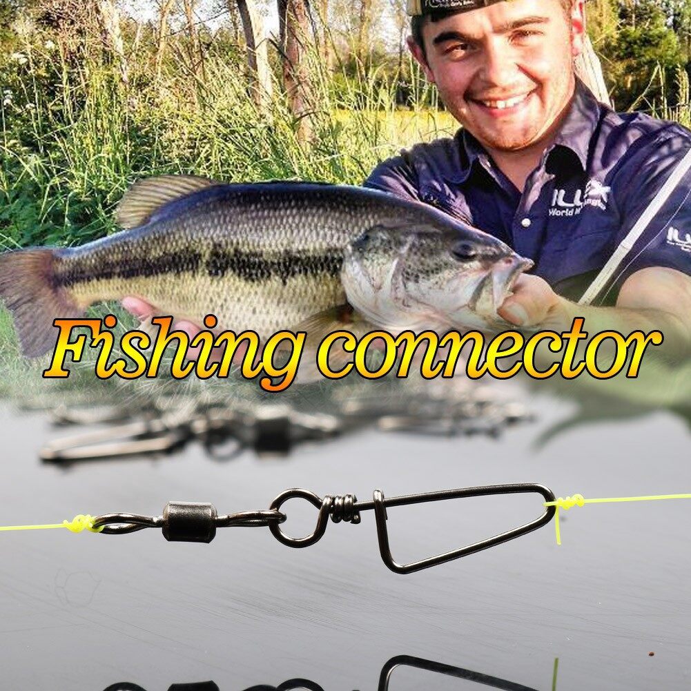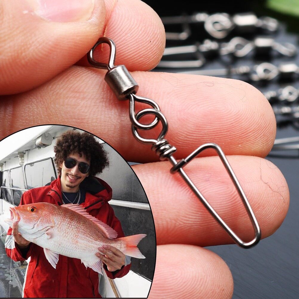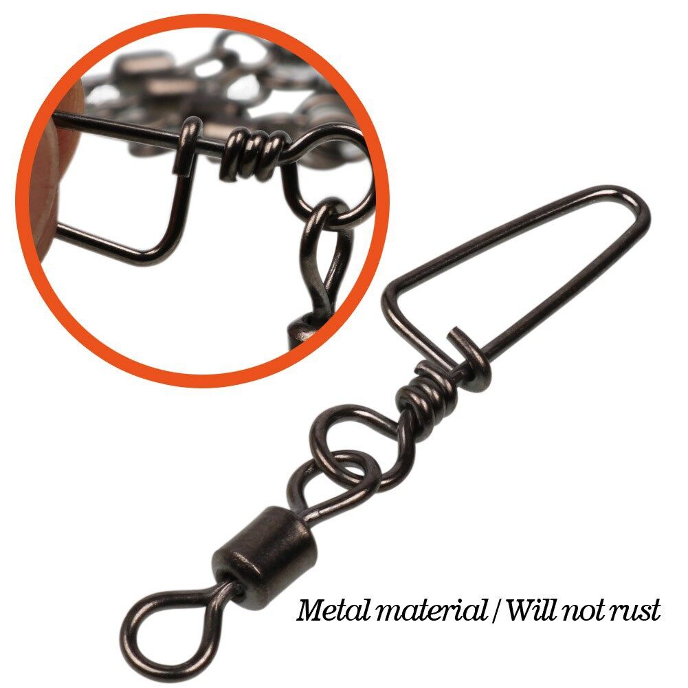 Sougayilang 33mm-70mm 50pcs Swivel Gear Fishing Swivels with Snap Lock Stainless Steel Black Color Nickel Fishing Connector Fishing Gear
