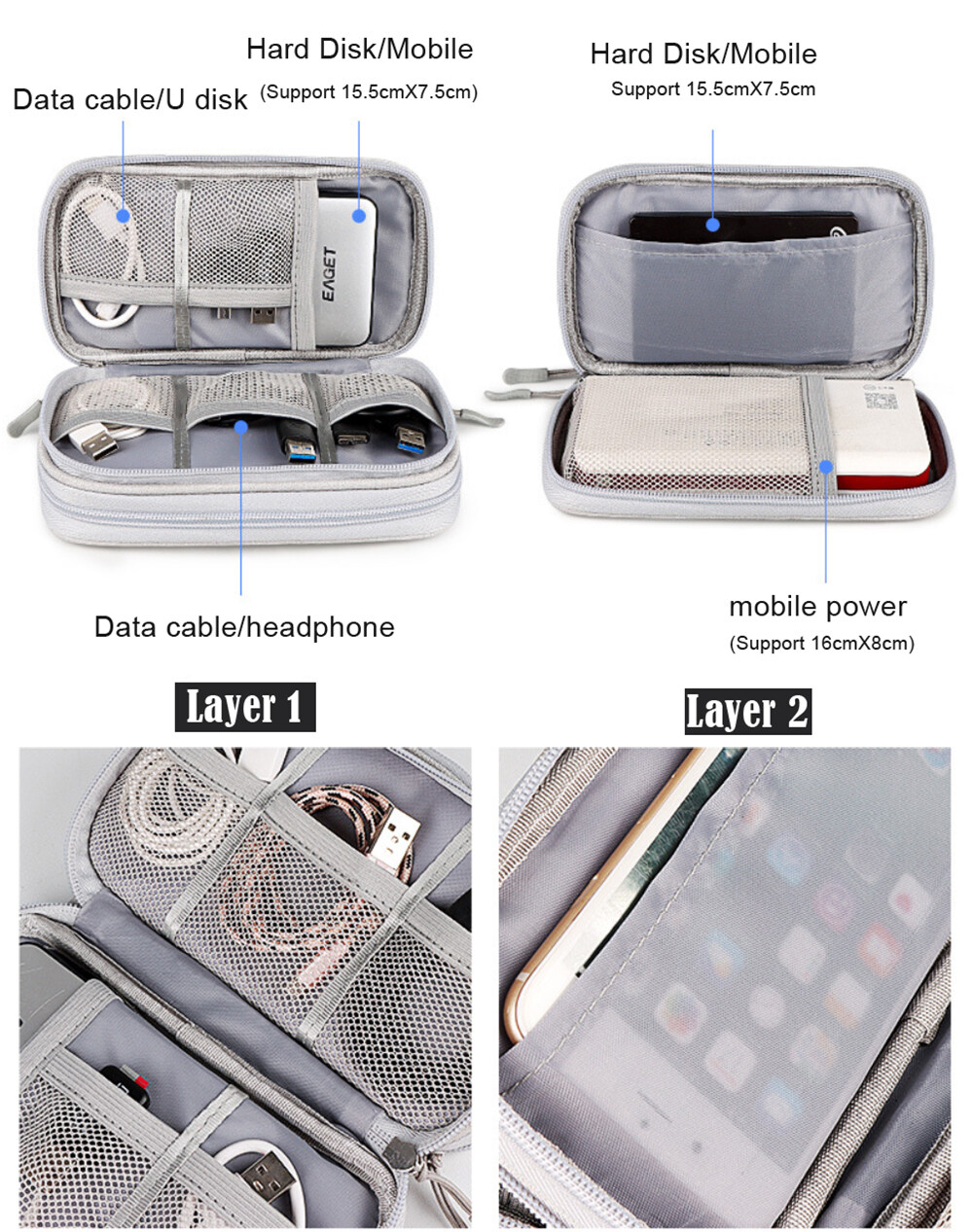 Electronic Organizer Waterproof Travel Cable Organizer Bag, Portable Travel U disk hard drive headset multi-function Electronic Accessories Storage Bag