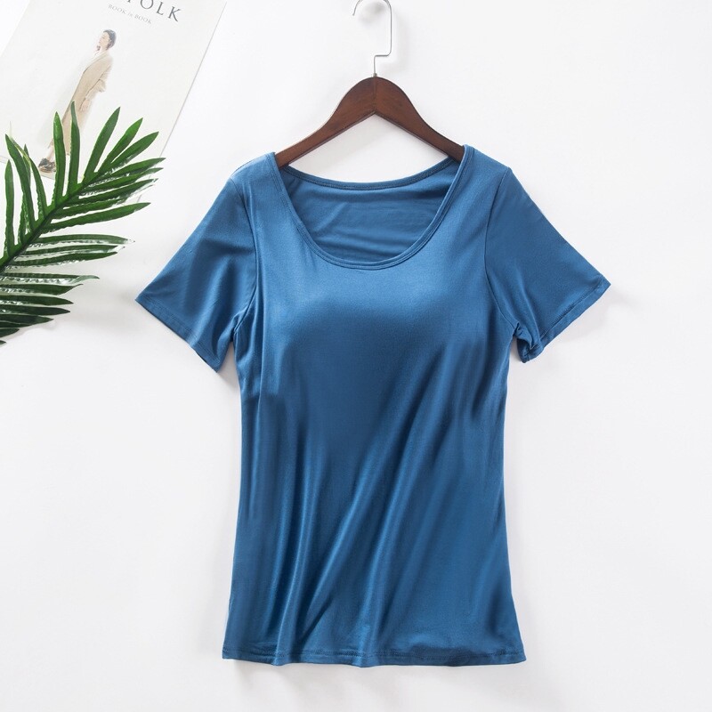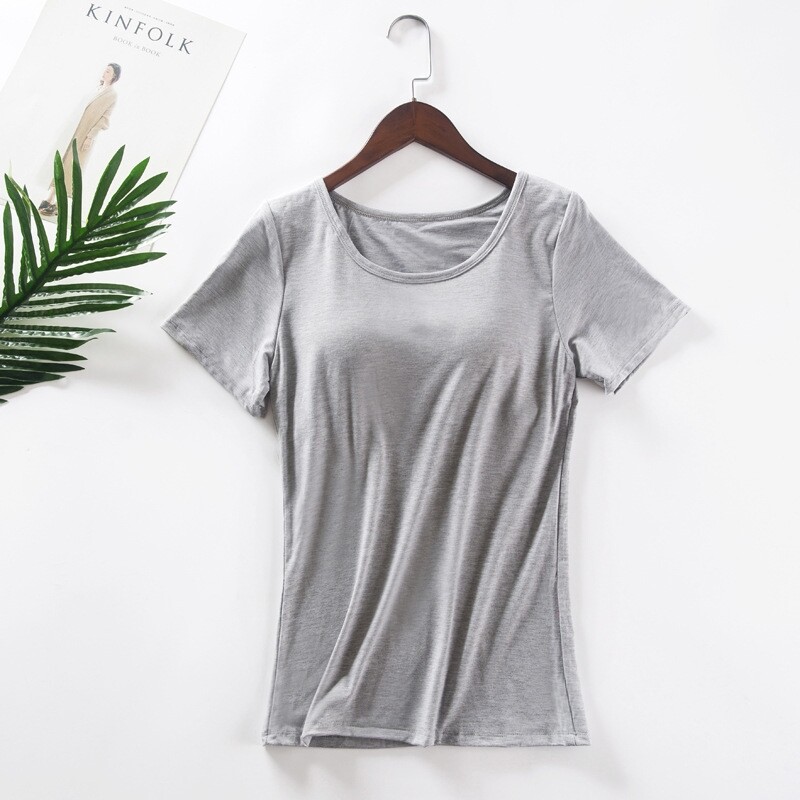 Women T-Shirts Built-in Bra Padded Stretchable Modal Push-Up Tops Tshirts