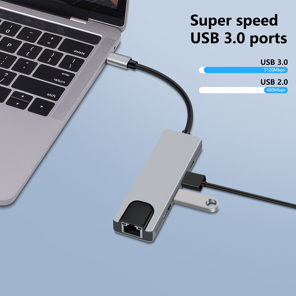 Multiport USB C Hub: USB-C Power Delivery Charging Port, USB C to HDMI Output, 2 x USB 3.0 Ports, Gigabit Ethernet port (RJ45 port) Functional and versatile.