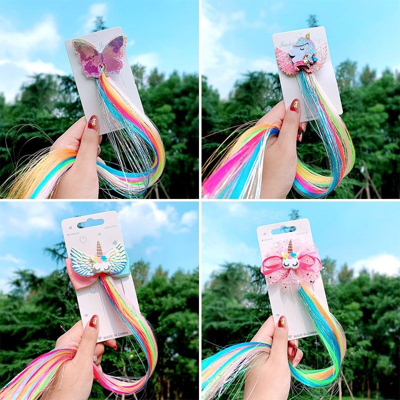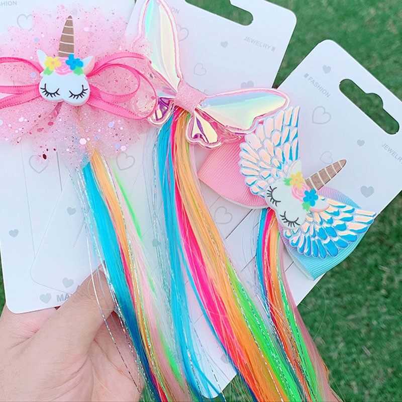 Colorful Wig Pigtail Elastic Hair Band for Girls Sequin Glitter Unicorn Scrunchies Ponytail Hair Ropes Kids Headwear