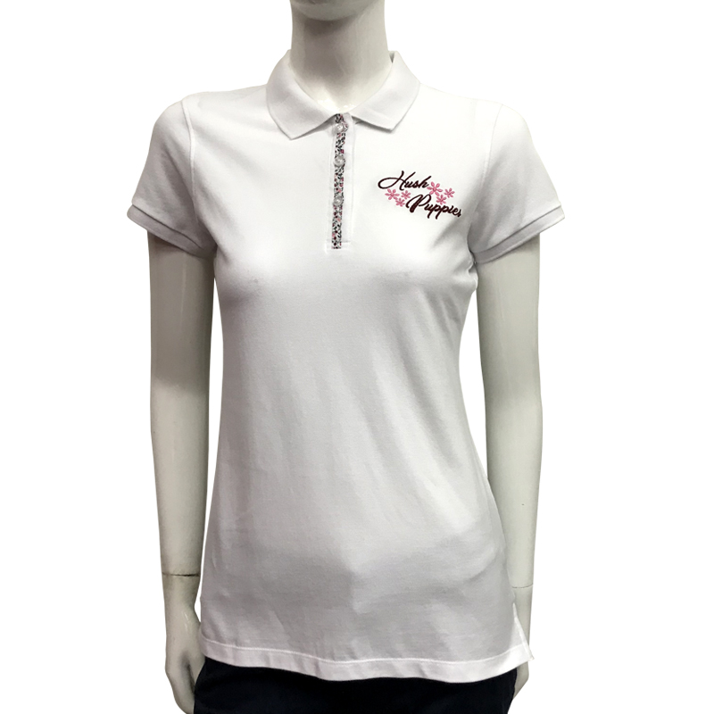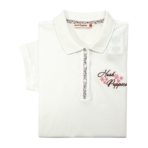 HUSH PUPPIES LADIES PIQUE POLO WITH EMBROIDERY |100% COTTON| #HLP059599WHT/PNK
