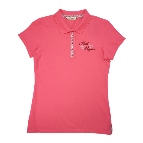HUSH PUPPIES LADIES' COTTON PIQUE SHORT SLEEVE MANDARIN COLLAR POLO W EMB | #HLP177904