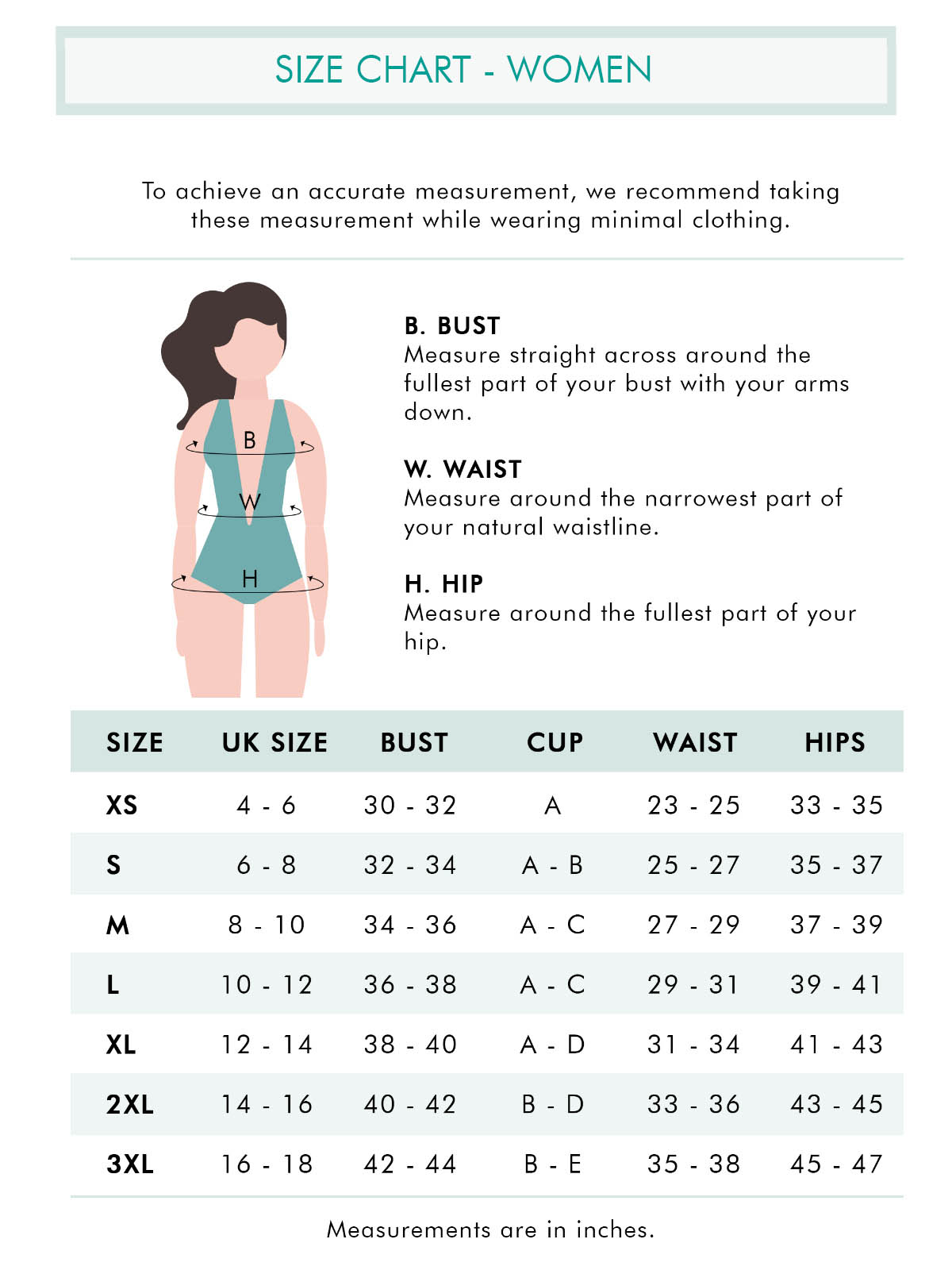 -Size 2XL (UK 14) measures for bust-40-42", waist 32-34", hip 42-44"