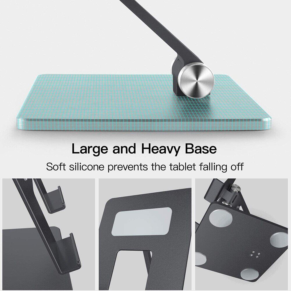 • 【STURDY & DURABLE】 Made of premium aluminum alloy material, higher strength, lighter weight, durable in usage. Rubber pads of tablet stand can protect your device from daily scratches and sliding.