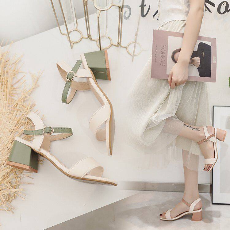 ⭐️ SW ⭐️ Shoes Women Heeled Sandals Women House Slippers Women Summer New Fashion All-match Mid-heel Thick with Korean Style Collocation Skirt Sandals Women