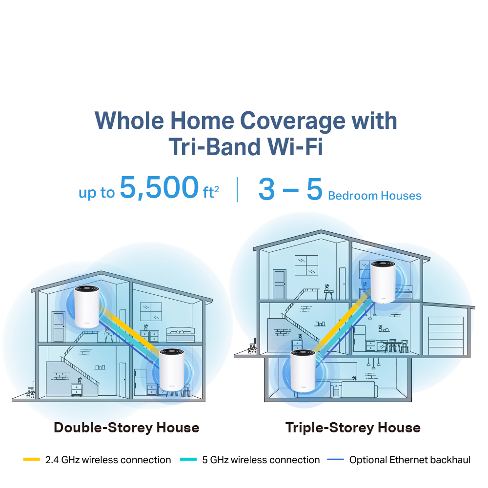 TP-LINK Deco X68 AX3600 Tri Band Gigabit OFDMA MU-MIMO WiFi 6 AI-Driven Mesh Router (Whole Home Mesh WiFi 6 System) Works with all Telcos (Supports IPTV)