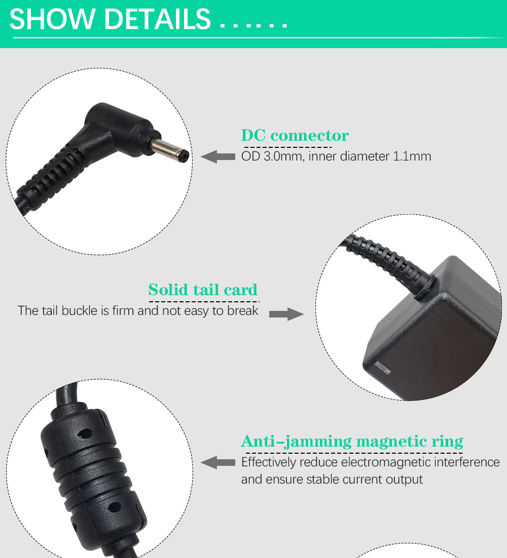Connector tip size: 3.0*1.1mm (see picture ) (not 5.5*1.7mm)