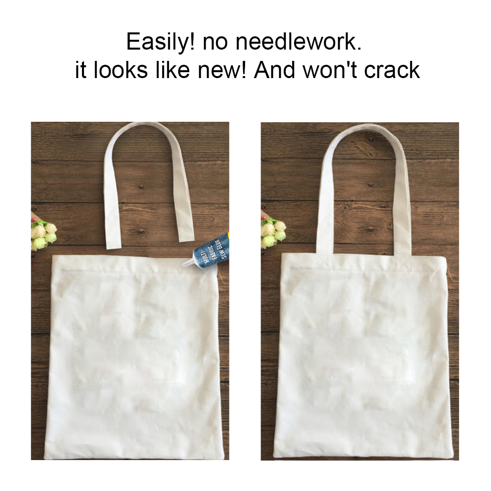 No more stitching! No needle work needed! Simply apply a thin layer of Glue to one side of the fabric and attach to the other piece of fabric. Press valid for 30 seconds and done.