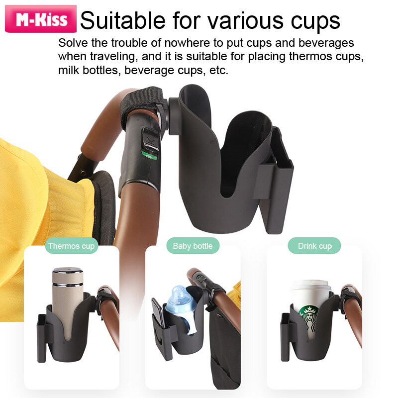 M-Kiss Stroller Cup Holder with Phone Stand Multifunctional Universal 2-in-1 Bottle Holder or Stroller Wheelchair Walker