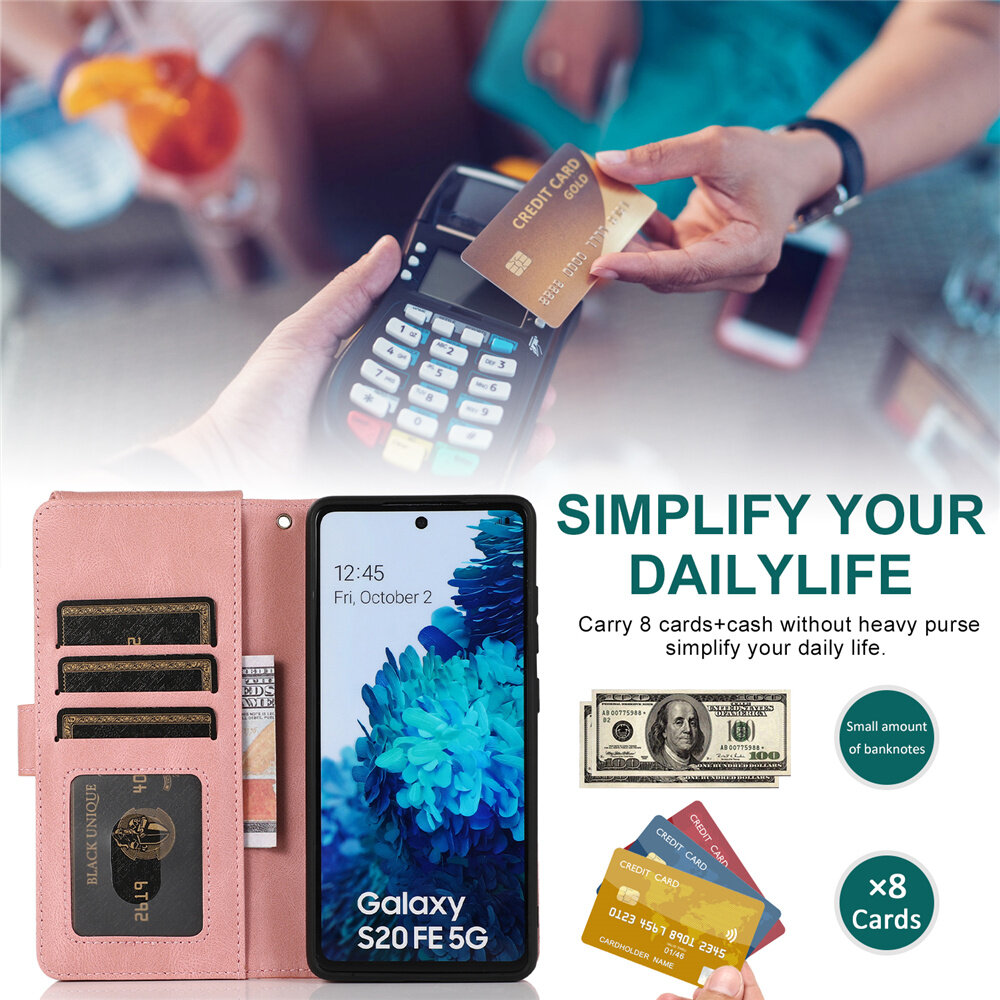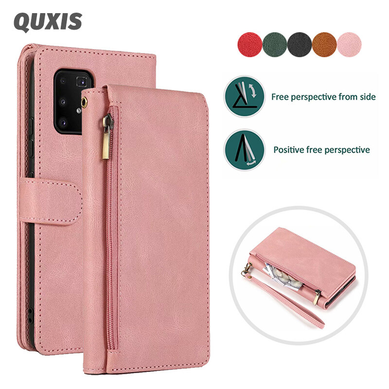 Luxury Zipper Wallet Case For Samsung Galaxy S23 S22 S21 S20 FE S10 E S9 Note 20 10 9 Ultra Plus Lite Leather Flip Card Phone Bags Cover