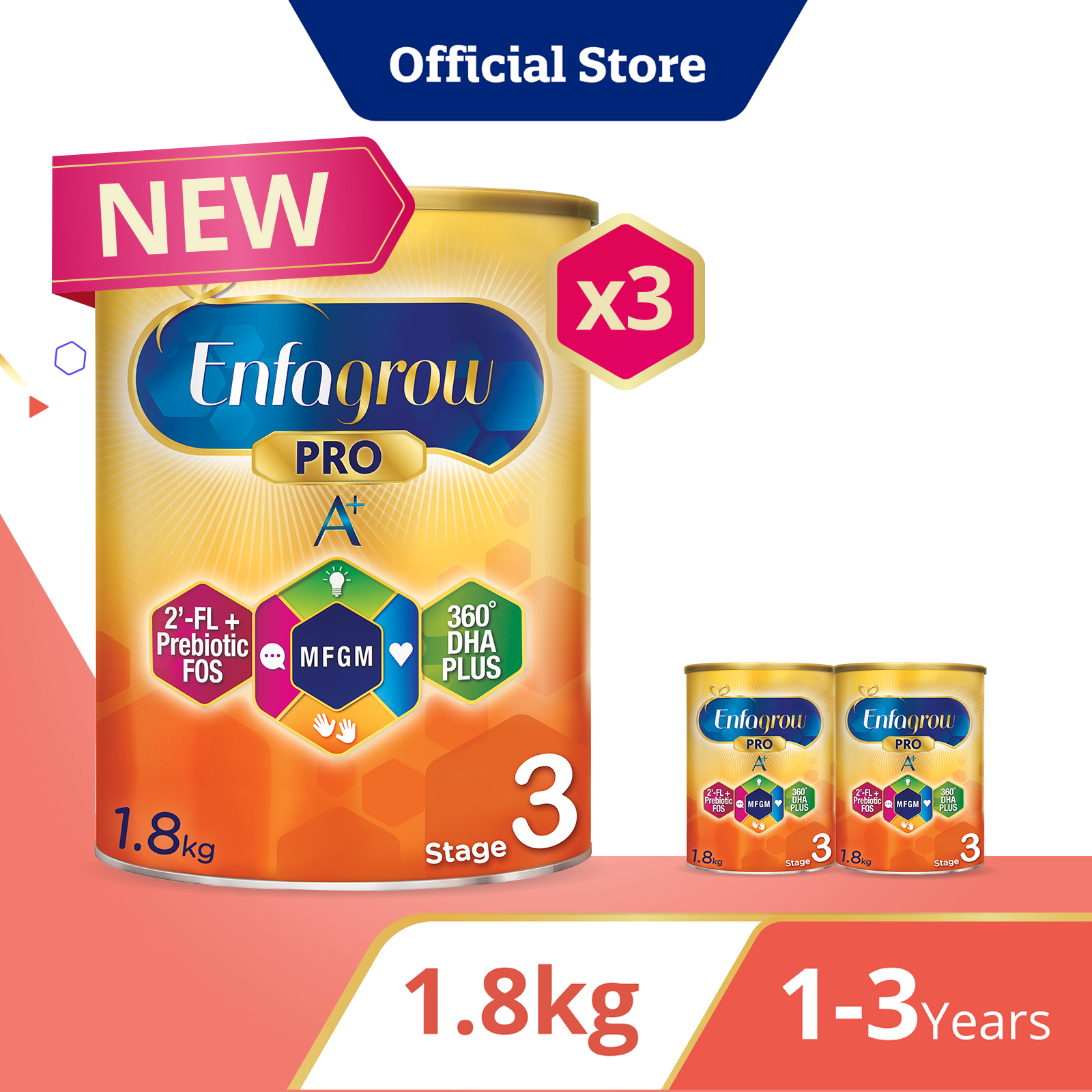 • With over 100 years of experience in pediatric nutrition, Mead Johnson Nutrition has scientifically formulated Enfagrow Pro A+ Stage 3 with a unique blend of nutrients that are important for overall mental and physical development.