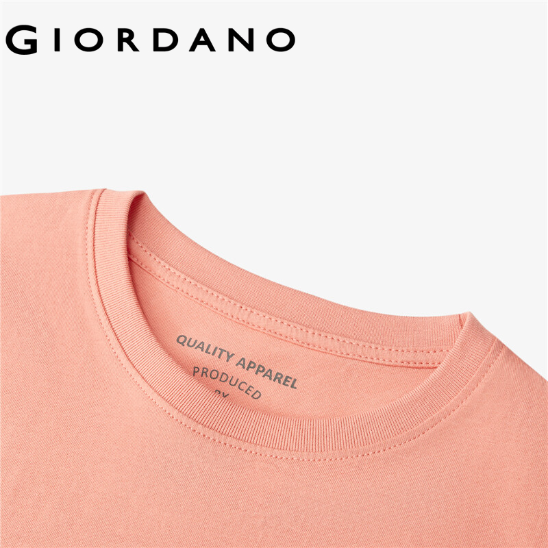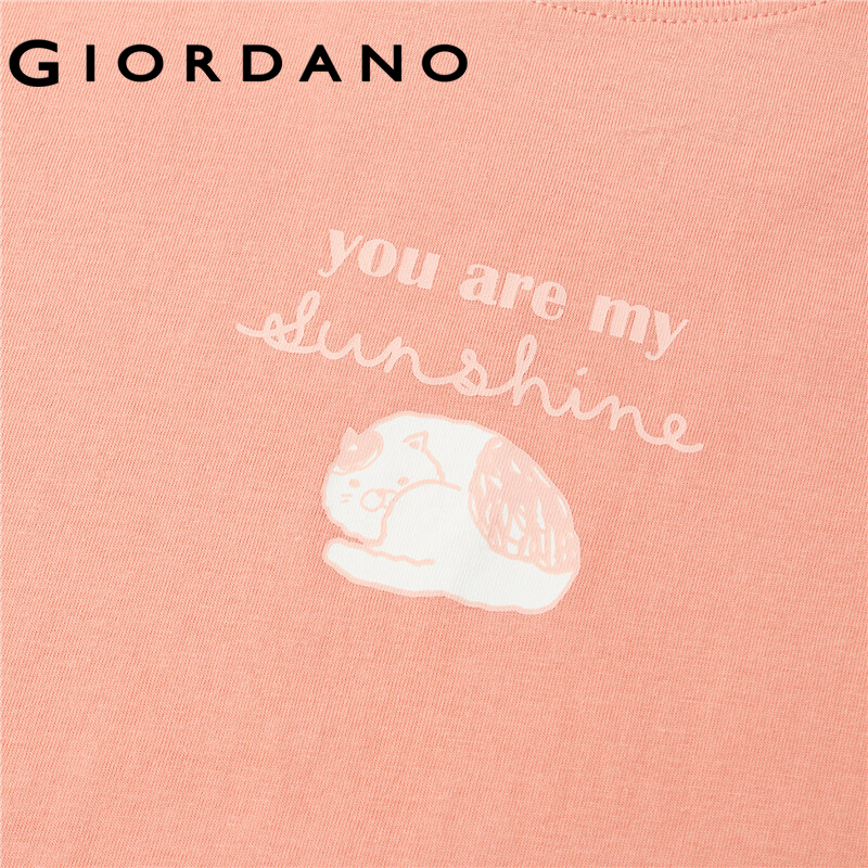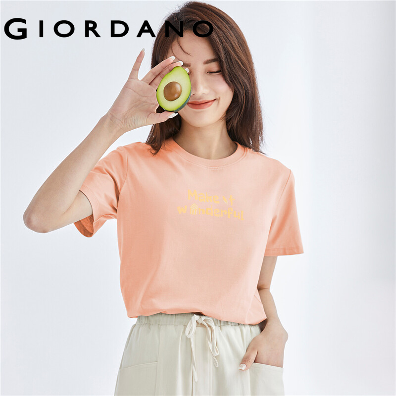 GIORDANO Women T-Shirts Fashion Printed Smile Face Cotton T-Shirts Summer Short Sleeves Ribbed Crewneck Basic T-Shirts 13391010
