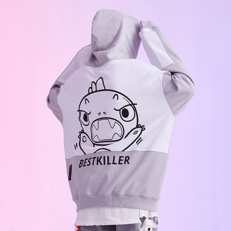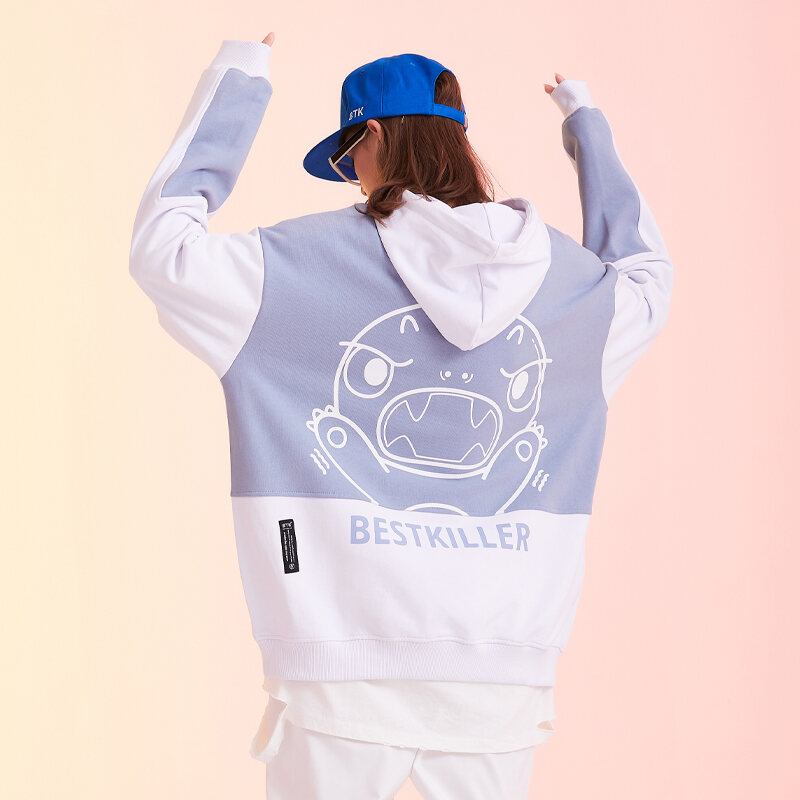 BTK Joint Name Spring and Autumn Fashion Brand Little Monster Hooded Sweater Men's Contrast Color Hoodie Couple Loose National Fashion Ins Coat