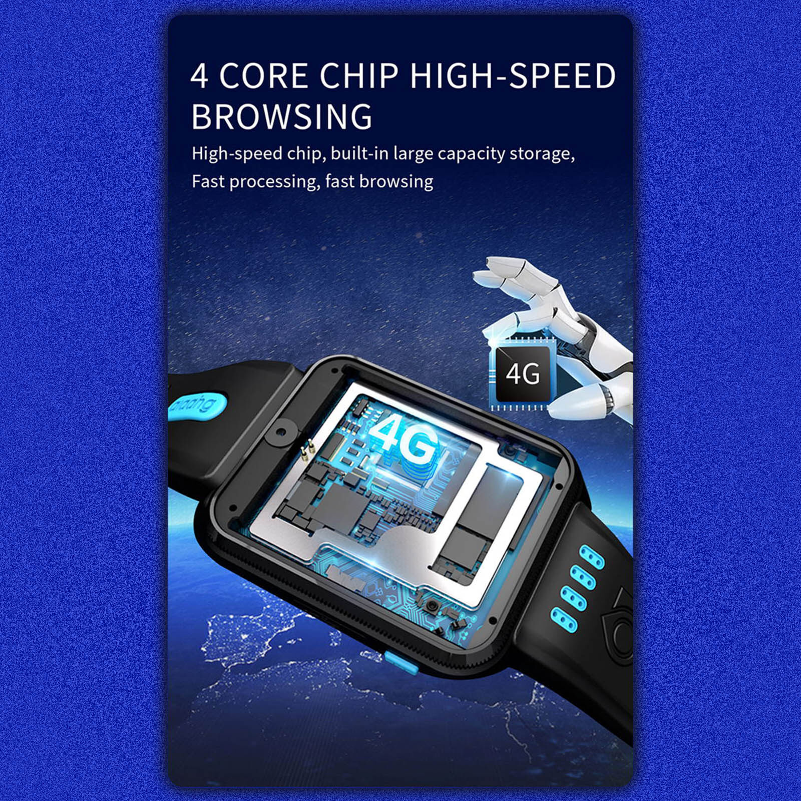 W5 4G Smart Watch (SIM Card) GPS+Wi-Fi+LBS Multiple-Positioning 1.54-inch Full-Touch Screen Quad-Core Processor 1G+8G Memory 2.0MP+2.0MP Dual Camera