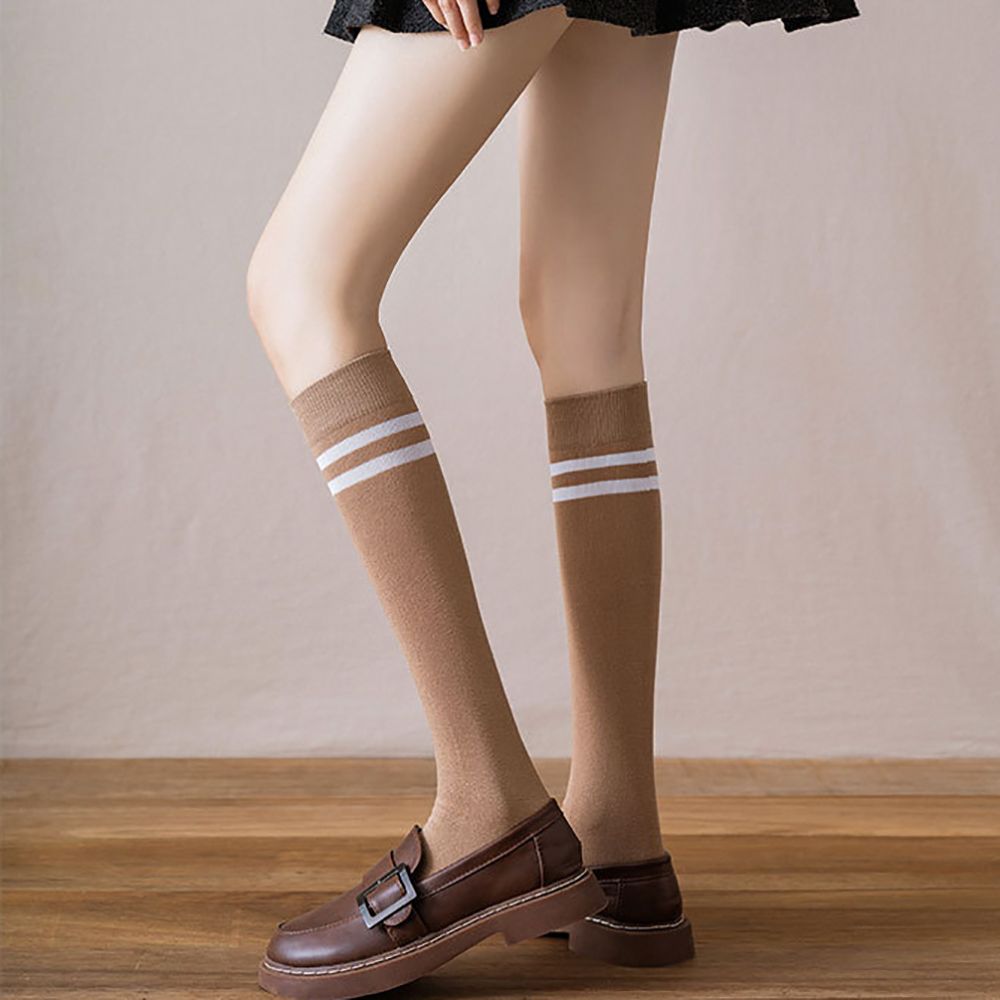 NANT Unique Elastic Two Bar Cotton JK Multicolor For Girl Women Stockings Striped Long Socks Hosiery Knee Socks