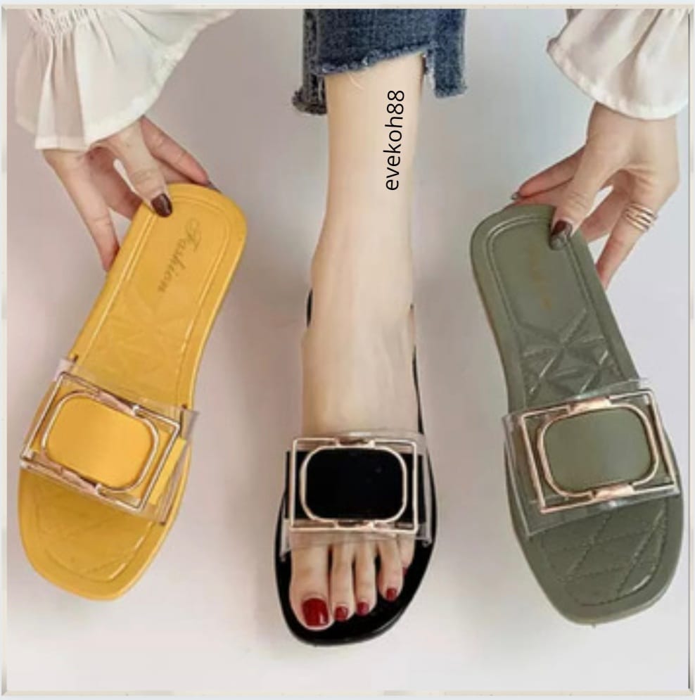 Woman Sandal Slides Square Buckle Summer Daily Fashion Transparent Latest design 2021 Zar~