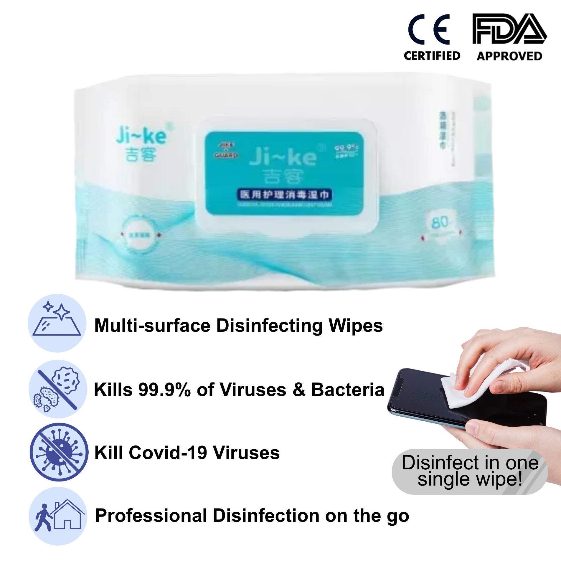 [Medeis x JIKE] Professional Sanitizing Wipes (CE Certified) 75% IPA Isopropyl Alcohol Wipes Germicidal Wipes Antibacterial Wipes Disinfectant Wipes Antiseptic Wipes Sanitising Wet Wipes Tissue Large