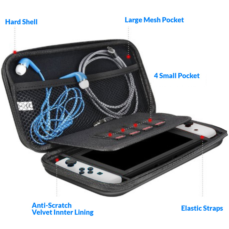 Nintendo Switch OLED Travel Pouch Hard Case Casing Ultra Hard, Maximum Protection, Memory Card Storage, High Quality Zipper, Big Space fit All [SG Seller]