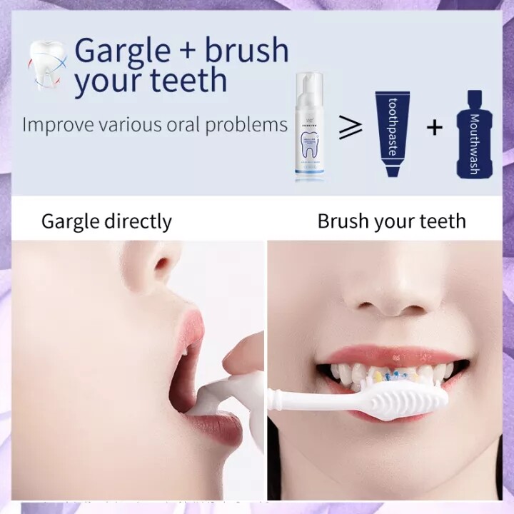 • 02.Squeeze proper amount of foam on your toothbrush. Gently brush your teeth and coated tongue for 2 – 3 minutes for cleaning and refreshing