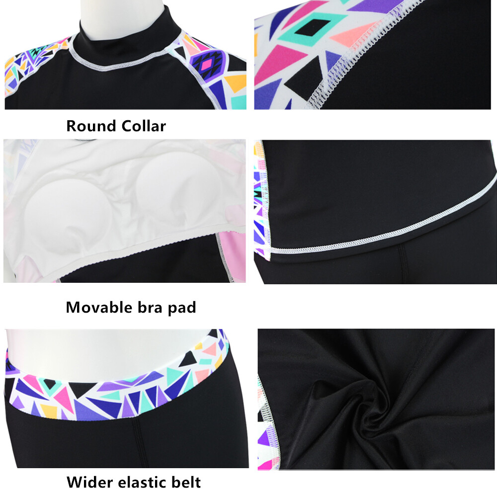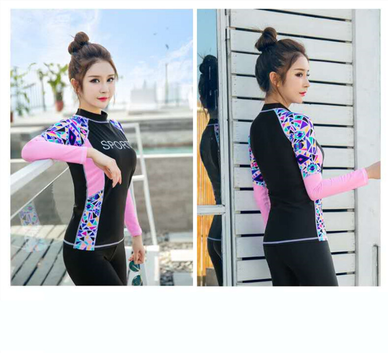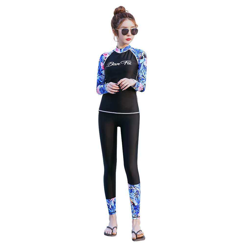Full Body Women Long Sleeve Rash guards with Black Swimming Pants Diving Suit Swimsuit Printing Swimwear Sunscreen Bathing Suits Yoga Sports Clothing