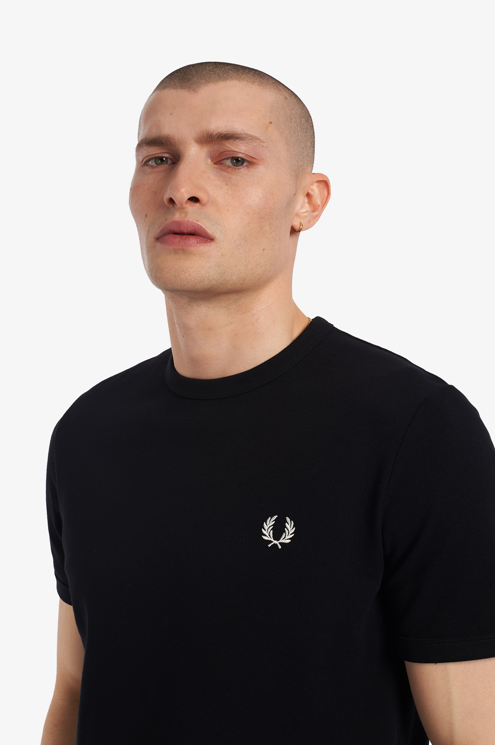 First used on our tricot track jackets in the 1970s, our branded track tape has become something of a signature detail. Designed with our graphic tape stitched inside the side vents, our T-shirt offers a subtle take on the familiar detail. Very very Fred Perry.