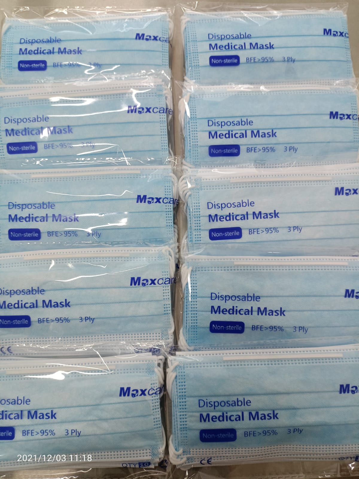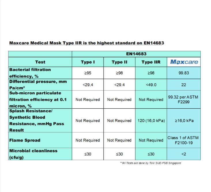 Summary of product (Maxcare 3 Ply Medical Mask Type IIR):