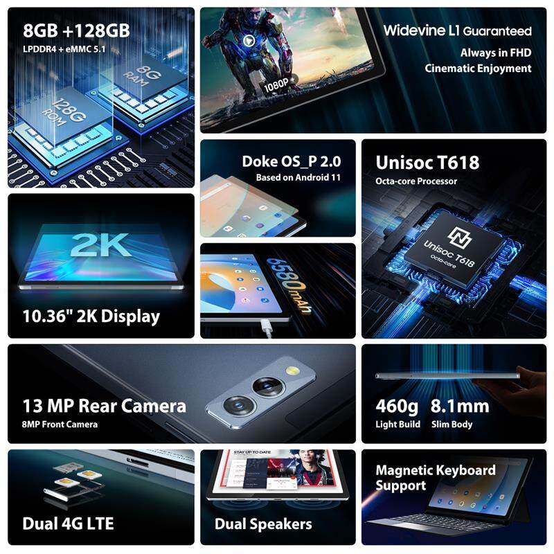 【Free Gifts】Blackview Tab 11 tablet Pad 8GB RAM 128GB ROM 10.36" 2K Display Octa core Android 11 6580mAh Battery In Stock support NETFLIX