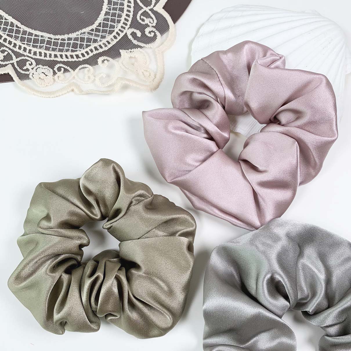 [SG ✨ Large]100% Authentic Mulberry Silk Scrunchies - 19 Momme Hair Ties Hair Ropes Hair Bands Premium Elastics Ponytail Holders for Women Girls Hair Accessories, No Hurt to Your Hair, Dress Up