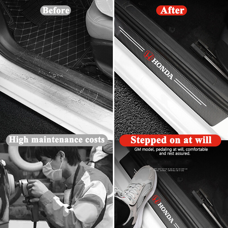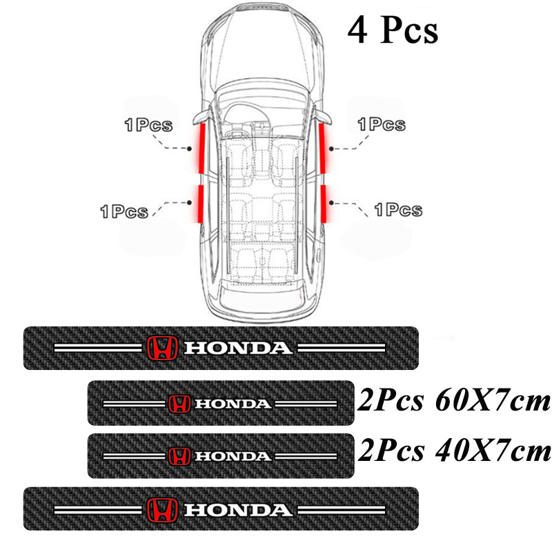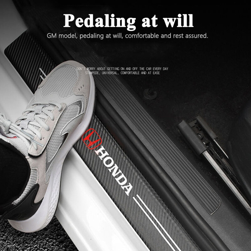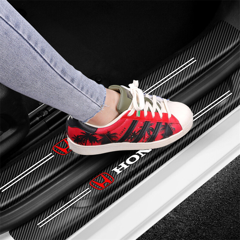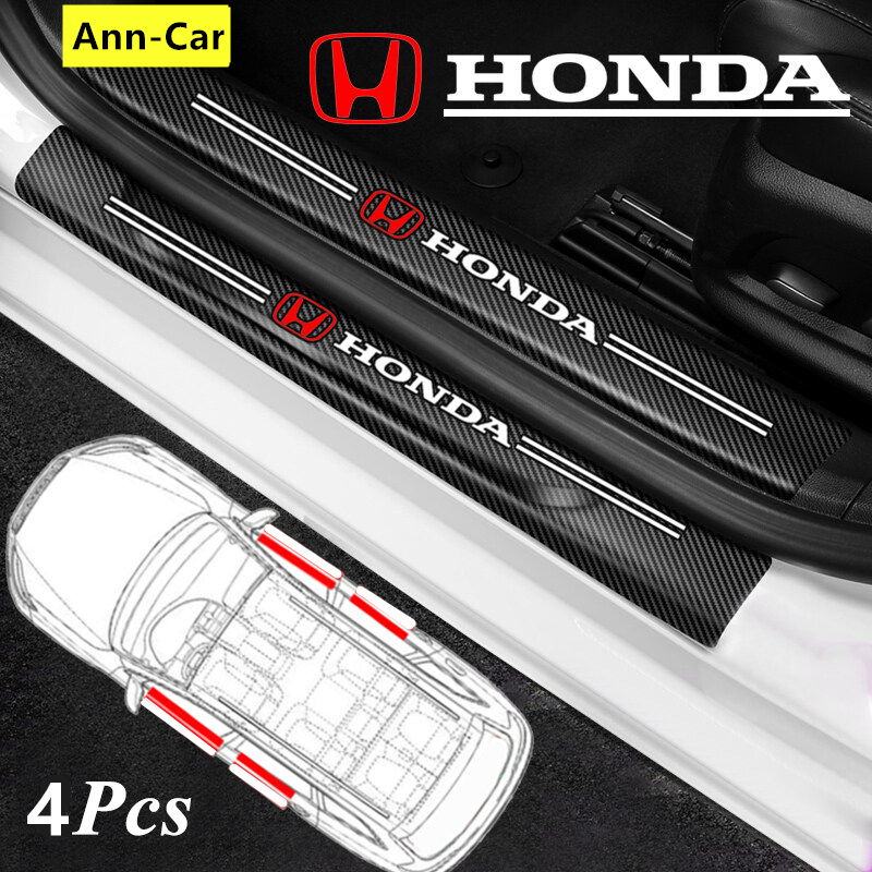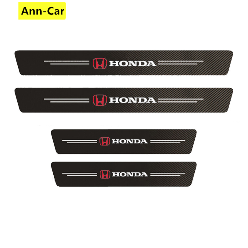 【Ann-Car】4pc/Set Car Door Side Step Sill Strip Carbon Fibre Leather Anti Scratch Protector Sticker Fiber for For Honda Civic BRV XR-V CR-Z CRV HRV City Accord Legend Jazz VTi Fit Mobilio VEZEL