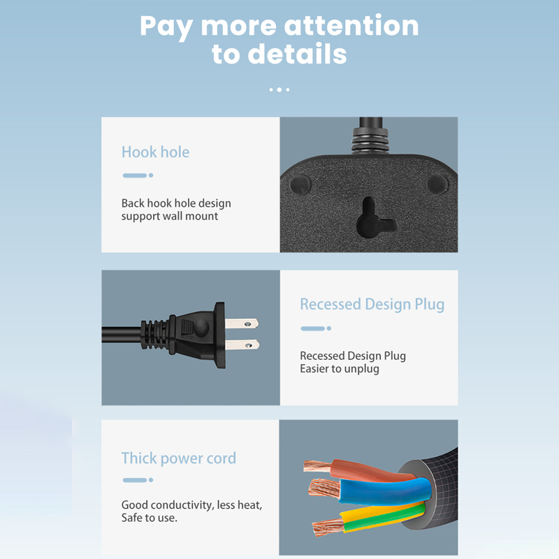Combining multi sockets plug & USB outlet together, compact size & tidy, charging up to devices simultaneously, such as cellphone, tablet, laptop, lamp, etc. It's suitable for Bedroom, Dining Room or office using