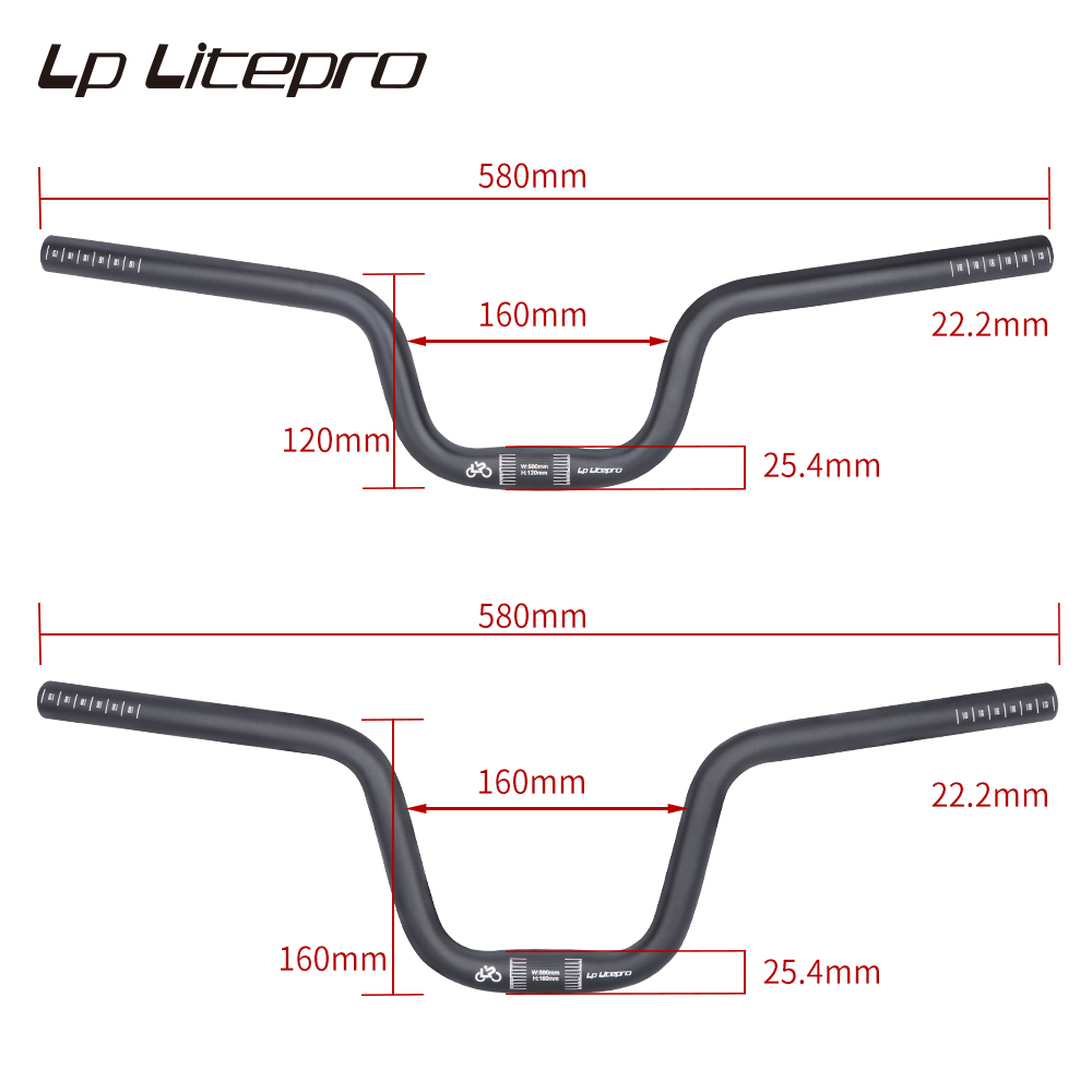 LP Litepro Folding Bicycle M Handlebar 25.4MM*580MM Ultra Light Aluminum Alloy Handle Bar 120/160 Height BMX Cycling Accessories