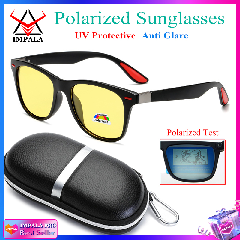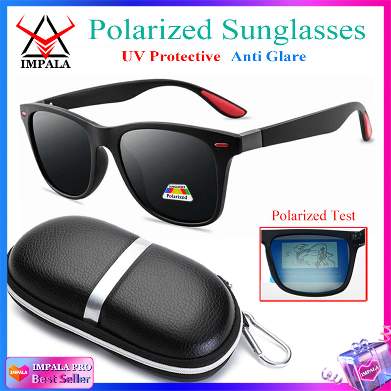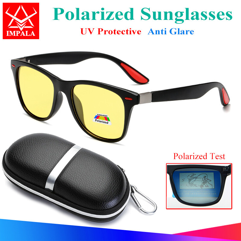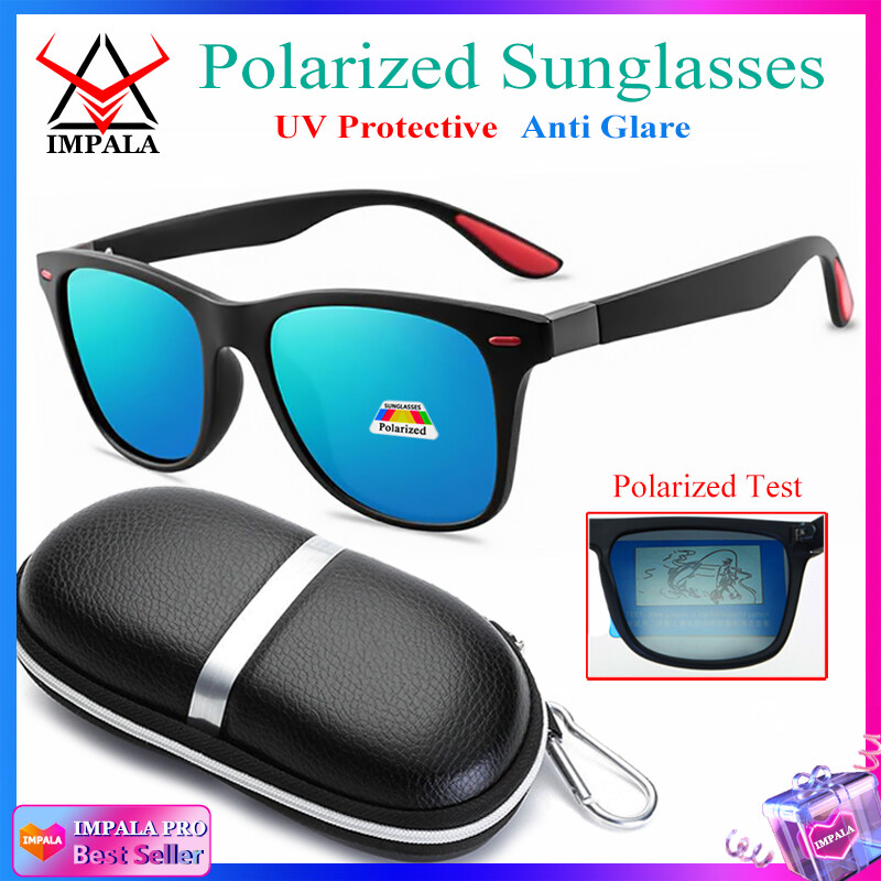 IMPALA PG117L Fashion Polarized Sunglasses for Men and Women Anti Glare Sun Glasses Driving Fishing UV400 Protective HD Lens with Glasses Case