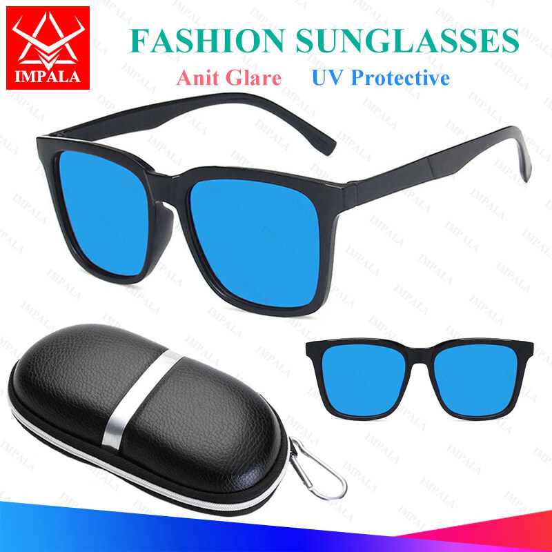 IMPALA QT1612L Fashion Sunglasses for Men and Women Anti Glare Sun Glasses UV400 Protective Block Sunshine Driving Traveling Eyewear with Buckle Box