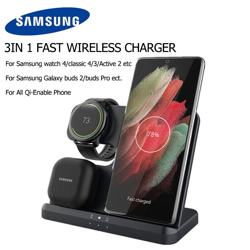 Samsung Wireless Charger Stand 3 in 1 wireless charger For Samsung Galaxy S22 Ultra Z Flip 3 Watch 4 3 Active 2 Gear S4 Buds Wireless Charging Station