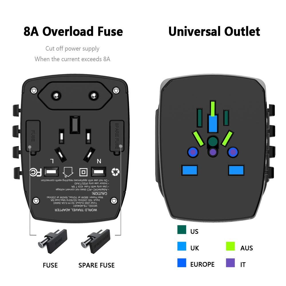 • Portable and compact: Tessan travel plug. Thanks to the integrated USB slots, you save many small USB chargers. For all travellers, it is a great companion.