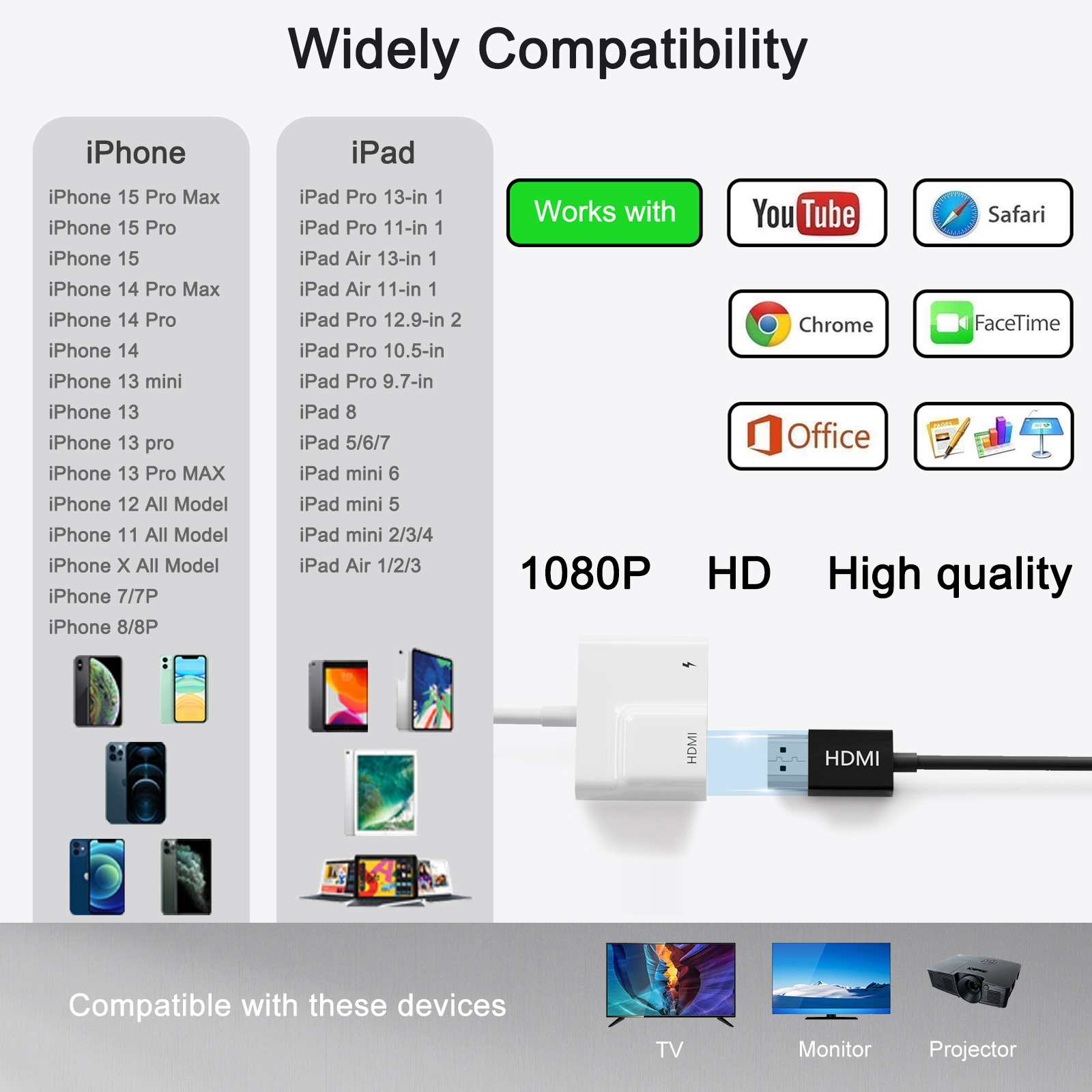 ANYTROX Lightning to HDMI Adapter with Fast Charging Port iPhone Screen to TV Projector/Monitor