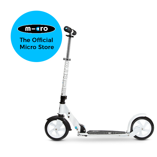 The Micro White/Black is one of our best selling adult scooters, perfect for long distance riding. The extra large 200 mm wheels are designed to create a smooth glide and a comfortable ride. The deck design is unique, with placement lower than the axle, providing greater stability and an ergonomic position on the scooter. To avoid splashes on clothes, these scooters also come with a fender.