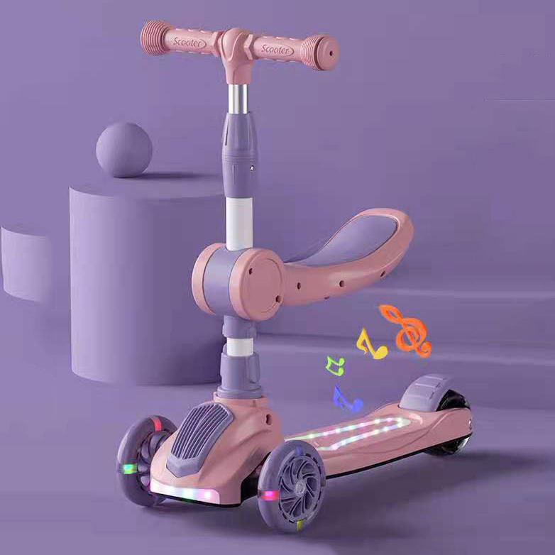 ?? OneTwoFit Kids Adjustable Light Scooter With Seat Music Colored Children Scooters