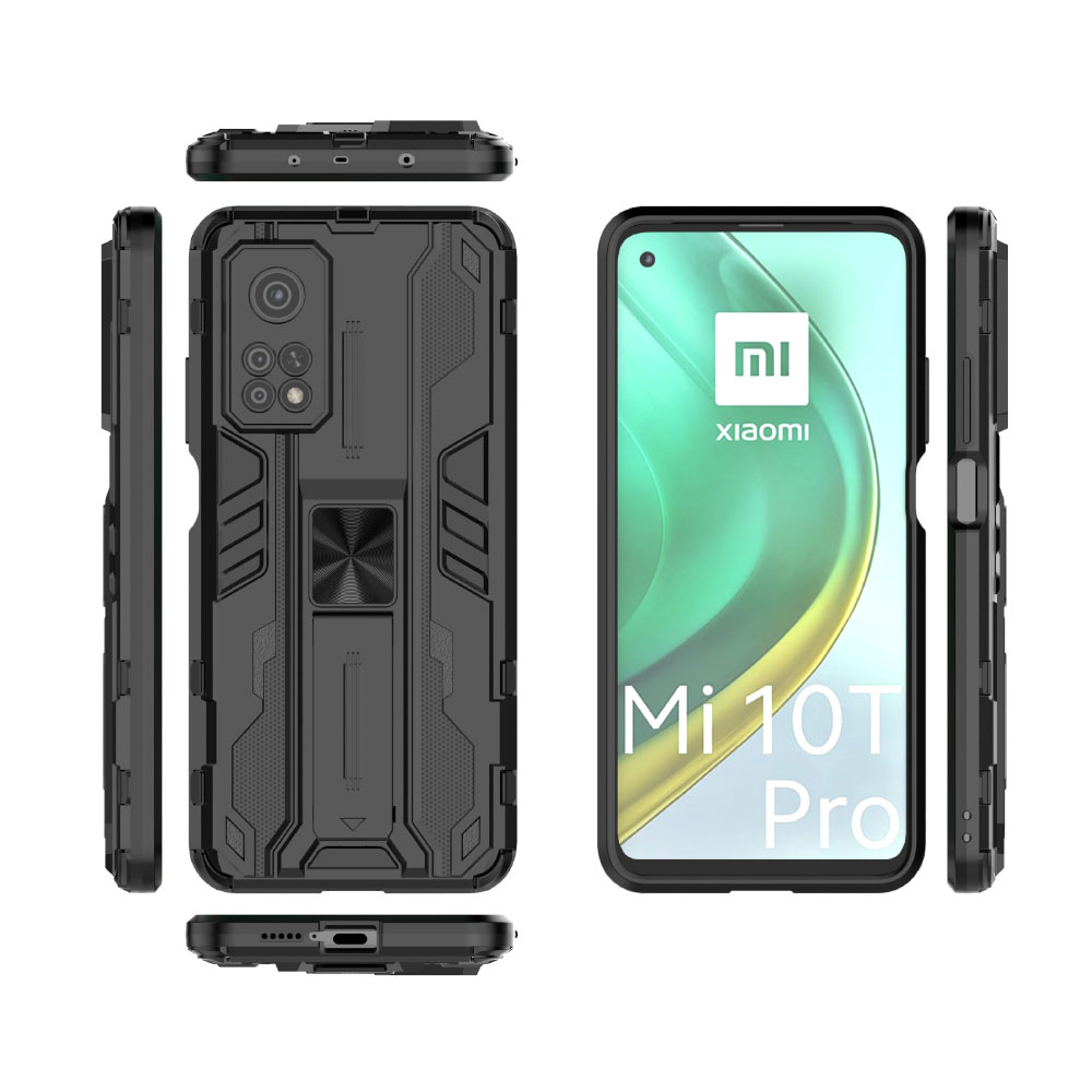 For Xiaomi 10T Phone Case,For Xiaomi 10T Pro Cases,Silicone TPU And Hard PC Luxury Armor Shockproof Invisible Stand Back Cover