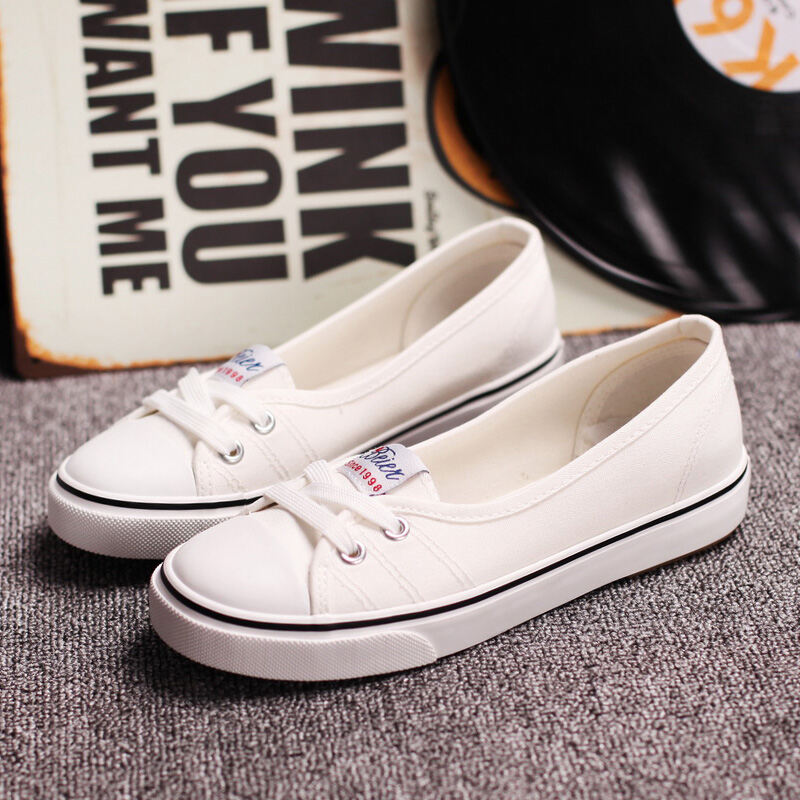 Beier Shallow Mouth Spring/Summer Canvas Shoes Women's Korean Casual Foot Covering Shoes Students Flat Cloth Shoes Single-Layer Shoes Nurse White Shoes